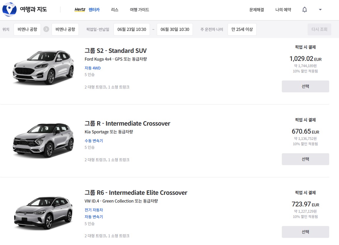 2026. 6. 23 - 2026. 6. 24 (1일) 비엔나 공항 픽업/반납 기준: