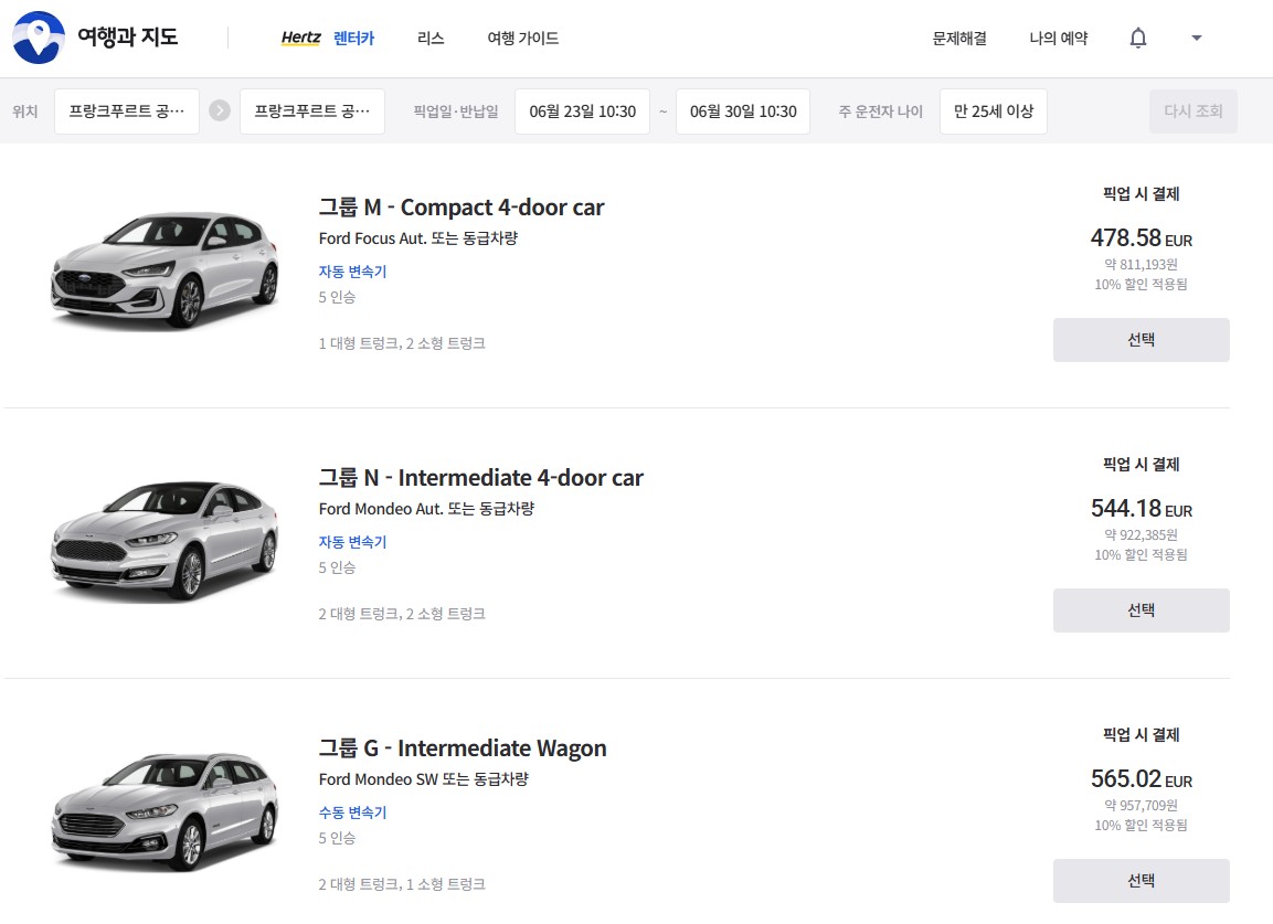 | 오토 | 그룹 N - Intermediate 4-door car | 544.18 EUR |