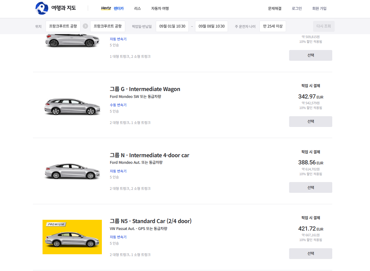 | 오토 | 그룹 N5 - Standard Car (2/4 door) | 421.72 EUR |