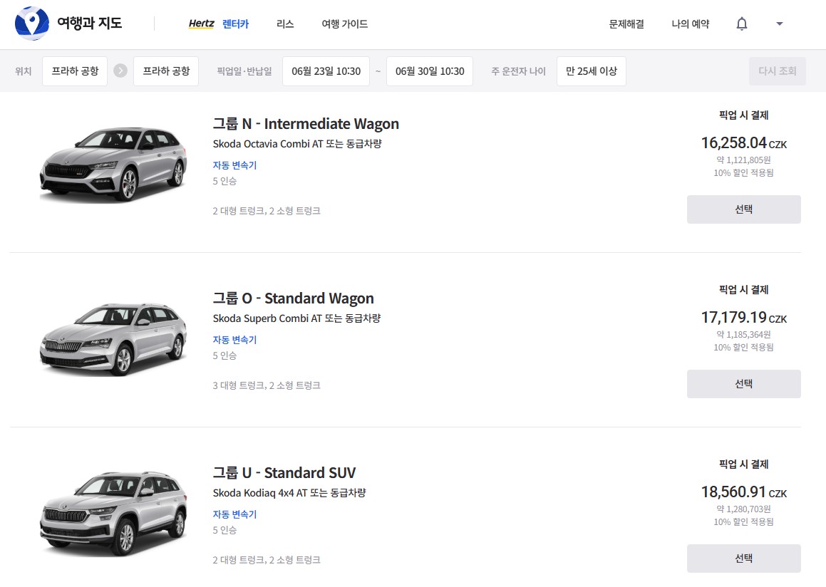 2026. 6. 23 - 2026. 6. 30 (7일) 프라하 공항 픽업/반납 기준: