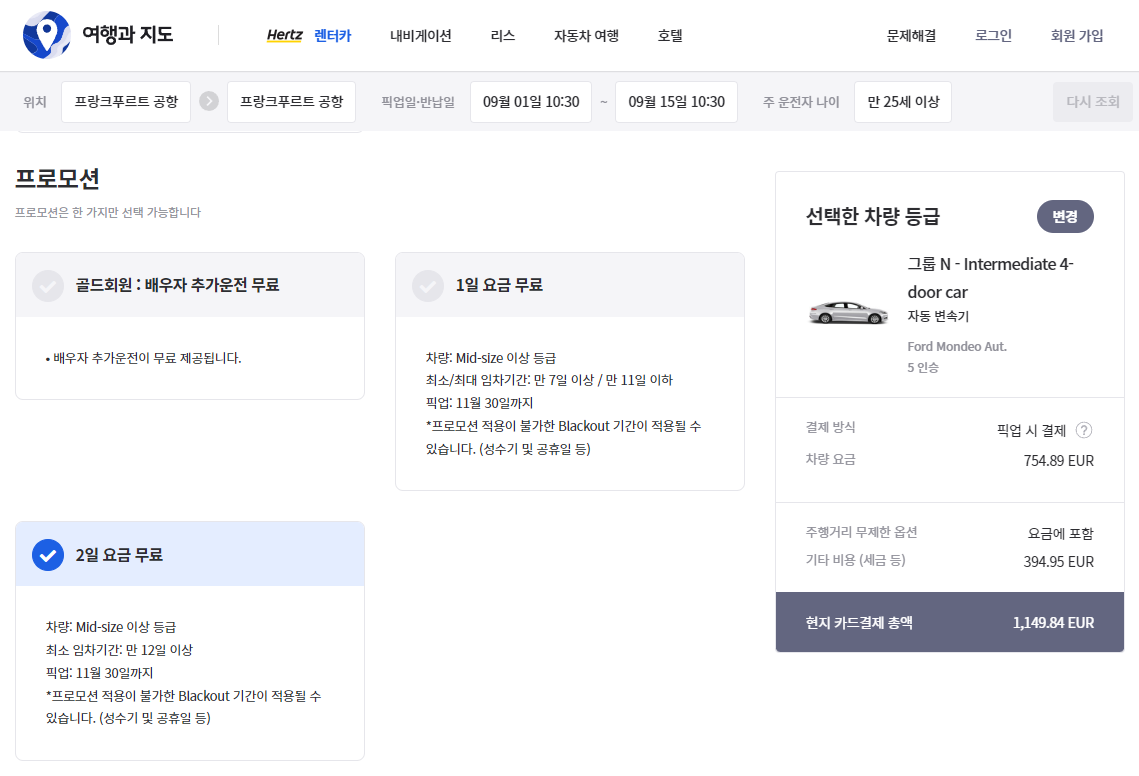 이 때는 아무것도 선택하지 않고 여행과지도 10% 할인만 받는 것이 유리합니다.